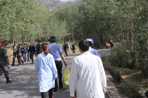 8月14日上午,阜康醫(yī)院組織起一支醫(yī)療小分隊,攜帶各種藥物與電子血壓計等醫(yī)療器械,在醫(yī)務(wù)科副主任黃川川及歐醫(yī)生等人的帶領(lǐng)下,奔赴哲蚌寺,步行走過寺廟各大角落,為駐守哲蚌寺各條線路的廣大執(zhí)勤民警送醫(yī)送藥,送去關(guān)懷。
