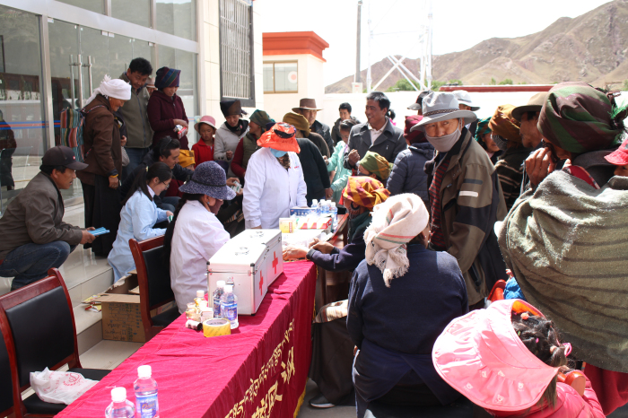 為關(guān)愛卡孜村農(nóng)牧民群眾的身心健康,提高群眾防病治病意識(shí)和醫(yī)療健康水平,進(jìn)一步落實(shí)“四講四愛”主題教育實(shí)踐活動(dòng),6月4日,工作隊(duì)主動(dòng)聯(lián)系西藏阜康醫(yī)院到卡孜村開展義診活動(dòng),對(duì)卡孜村農(nóng)牧民群眾集中體檢診療。