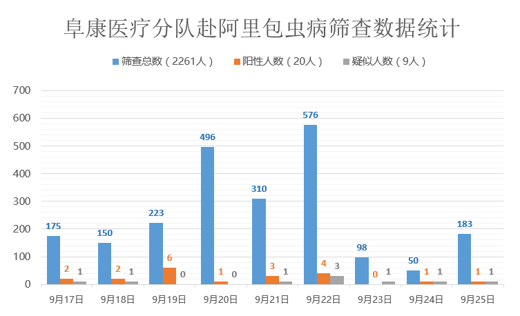 由于居民分散,9月24日阜康醫(yī)療隊(duì)驅(qū)車奔波一天,共篩查50人,發(fā)現(xiàn)1例陽性,1例疑似。9月25日,篩查183人,發(fā)現(xiàn)1例陽性,1例疑似!但是,每一次的檢查總有個(gè)別人拒絕抽血,我們的心情難以用語言表達(dá),不知道他們出于什么原因拒絕,我們心里還是擔(dān)憂他們的健康狀況,深深地感到健康衛(wèi)生知識教育仍需加強(qiáng),包蟲病防治工作任重道遠(yuǎn),我們將砥礪前行!