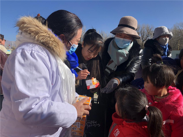 捐贈儀式結(jié)束后,阜康醫(yī)院義診隊(duì)為60多名學(xué)生免費(fèi)就診,發(fā)放藥品。義診隊(duì)醫(yī)生細(xì)心為孩子們看病,并耐心講解藥品的服用方法及注意事項(xiàng),老師仔細(xì)的在每個孩子的藥盒上注明孩子姓名及用法。