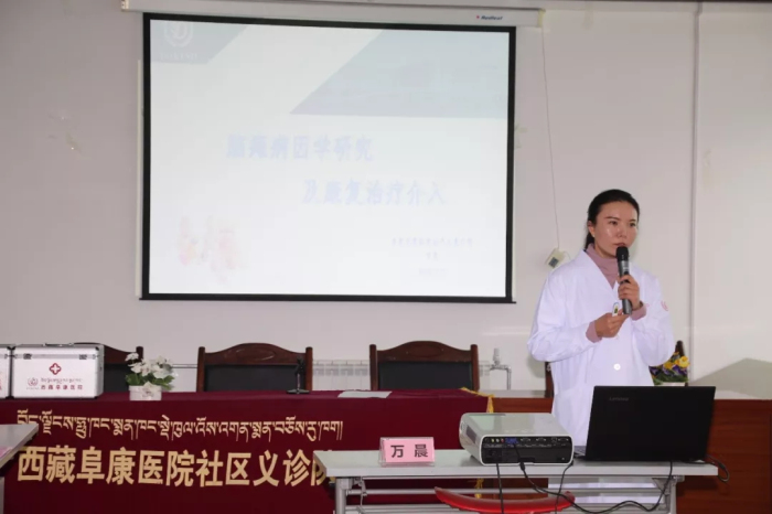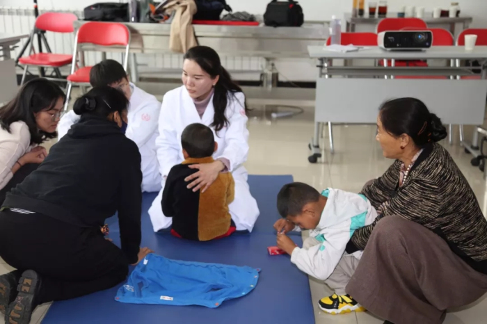 阜康醫(yī)院康復(fù)醫(yī)學(xué)科萬晨老師給大家講解了最新的兒童康復(fù)理念,包括日常生活中腦癱的危險(xiǎn)因素、腦癱的發(fā)病率、病因,以及腦癱兒童康復(fù)介入、患者康復(fù)的流程與方法,并結(jié)合患者康復(fù)訓(xùn)練視頻,給服務(wù)中心治療師分享了康復(fù)訓(xùn)練的方法。同時(shí),阜康醫(yī)院義診組也為孩子們進(jìn)行了檢查并為他們免費(fèi)發(fā)放藥品,認(rèn)真詢問患者用藥情況、耐心細(xì)致地說明用藥方法。后期阜康醫(yī)院康復(fù)醫(yī)學(xué)科還將對(duì)每一位患者免費(fèi)提供三天的評(píng)估及康復(fù)指導(dǎo)。