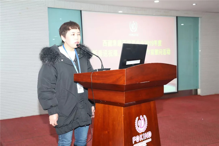 西藏阜康天使基金會秘書長吉拉帶來了阜康天使基金會創(chuàng)始人王斌、劉瀟瀟對困難員工的祝福和慰問,勉勵大家努力工作,與阜康共同進步,在走向幸福的路上一個都不能少,并祝大家過一個幸??鞓纺?由于此次受助人員都是藏族員工,吉拉秘書長用藏語鼓勵大家積極生活、努力工作,要用一顆感恩的心回報社會。阜康天使基金會將在區(qū)黨委、政府的領導下,緊跟時代步伐,發(fā)展創(chuàng)新,爭取在助醫(yī)、助學、助困上幫助到更多的人。