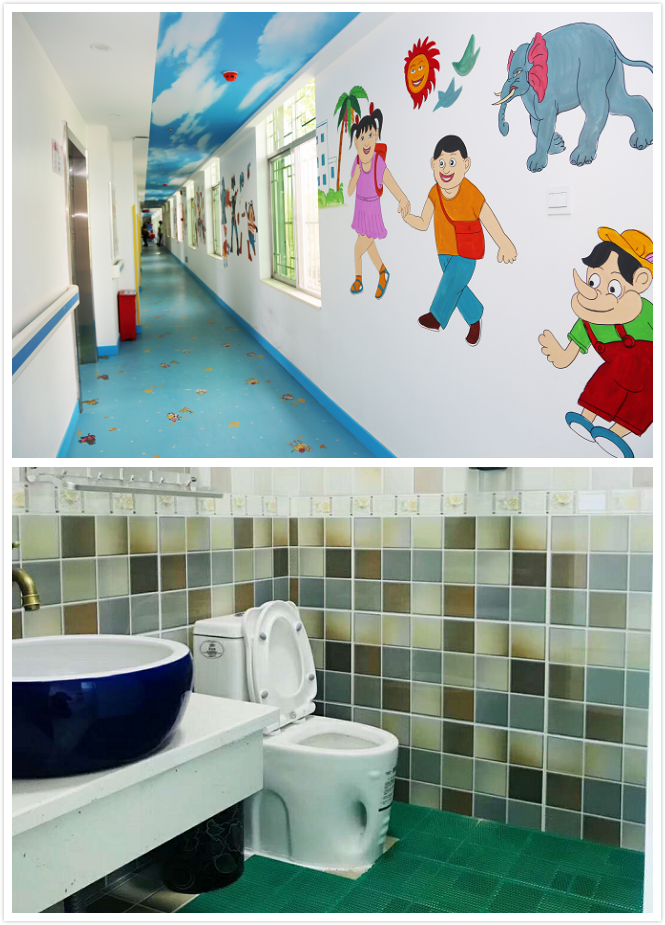 病房采用目前最先進(jìn)的兒童病床,兒童專用衛(wèi)生間。房間和走廊增加了許多孩子們喜歡的卡通元素,設(shè)置了專用的兒童游樂(lè)區(qū),配備了各種玩具,使病房變身為孩子們的游樂(lè)園。