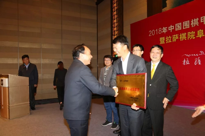 為表彰拉薩棋院阜康職業(yè)圍棋隊(duì)對西藏體育圍棋事業(yè)做出的巨大貢獻(xiàn),西藏自治區(qū)黨委副書記、主席齊扎拉代表黨委政府向拉薩棋院阜康職業(yè)圍棋隊(duì)領(lǐng)隊(duì)王斌頒發(fā)了“西藏自治區(qū)體育棋類貢獻(xiàn)獎”!肯定了阜康四年來支持拉薩棋院積極參與全國各項(xiàng)賽事并為圍棋在西藏的普及發(fā)展所做出的諸多工作。勉勵王斌繼續(xù)支持西藏的圍棋發(fā)展,一步一個腳印地做好醫(yī)療衛(wèi)生和體育文化工作。