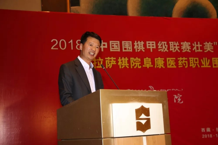 西藏自治區(qū)政府副主席甲熱·洛桑旦增代表自治區(qū)人民政府對各位嘉賓的到來表示熱烈歡迎。他說圍棋是一切棋類運(yùn)動的鼻祖,是中華民族優(yōu)秀傳統(tǒng)文化的瑰寶,融合了軍事、哲學(xué)、詩詞等多種文藝形式,是中華民族幾千年來智慧的結(jié)晶,也是對人類文明的重要貢獻(xiàn)。在建設(shè)社會主義文化強(qiáng)國、體育強(qiáng)國、實(shí)現(xiàn)中華民族偉大復(fù)興的中國夢進(jìn)程中,圍棋這樣一項(xiàng)由文化融進(jìn)體育的智慧運(yùn)動承擔(dān)著重要的歷史使命。拉薩棋院西藏阜康醫(yī)藥職業(yè)圍棋隊(duì)沖甲成功是西藏體育發(fā)展的重大突破,也是社會力量推動體育事業(yè)發(fā)展的典范。為此我代表自治區(qū)人民政府對西藏阜康醫(yī)藥職業(yè)圍棋隊(duì)沖甲成功表示熱烈祝賀,對社會各界支持西藏體育事業(yè)發(fā)展表示感謝,自治區(qū)政府將加快推進(jìn)體育事業(yè)改革、做強(qiáng)做大體育產(chǎn)業(yè),促進(jìn)全區(qū)體育事業(yè)再上臺階。祝愿2018年中國圍棋甲級聯(lián)賽壯美“第三極”西藏專場取得成功,祝愿西藏阜康醫(yī)藥職業(yè)圍棋隊(duì)在明年的甲級聯(lián)賽中取得更好成績。