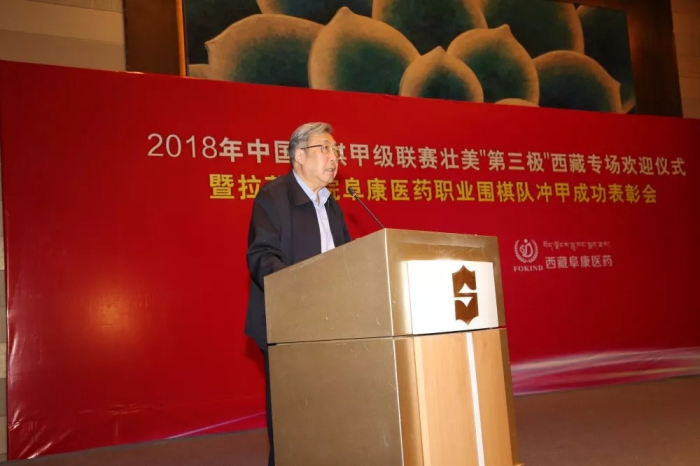 中國圍棋協(xié)會主席林建超將軍在致辭中表示,拉薩棋院西藏阜康醫(yī)藥職業(yè)圍棋隊(duì)沖甲成功是全國圍棋運(yùn)動中的一件大事。它首先改變了當(dāng)代中國圍棋運(yùn)動的版圖,雪域高原第一次在中國圍棋甲級聯(lián)賽中占有了一席之地;其次,這次沖甲實(shí)現(xiàn)了西藏體育發(fā)展的一次突破,使西藏在全國性的體育賽事中,擁有了第一支甲級職業(yè)隊(duì)伍;第三,本次沖甲成功,為圍棋文化和藏式棋類文化的交融促進(jìn)提供了一個很好的契機(jī),為西藏地區(qū)棋文化的發(fā)展起到了很好的推動作用。這項(xiàng)成績來之不易,首先應(yīng)該歸功于自治區(qū)各級黨委、政府的重視,尤其是齊扎拉主席長期以來對包括圍棋、藏式棋等棋類活動的支持,有效促進(jìn)了這項(xiàng)中華民族優(yōu)秀傳統(tǒng)文化在雪域高原的普及與發(fā)展,這是與習(xí)近平總書記在十九大報(bào)告中提出的戰(zhàn)略目標(biāo)相一致的。