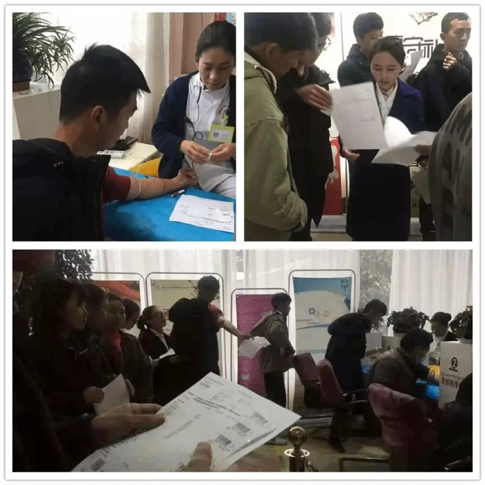 西藏阜康醫(yī)院健康體檢中心工作人員為體檢學(xué)生打印體檢指引單