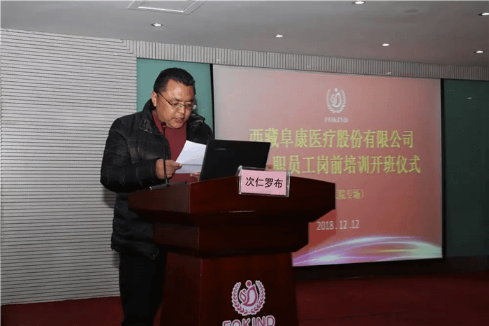 12月12日上午,開(kāi)班儀式在婦產(chǎn)兒童分院四樓會(huì)議室舉行。西藏阜康醫(yī)療股份有限公司黨委書(shū)記、董事長(zhǎng)王斌,西藏阜康醫(yī)療股份有限公司專(zhuān)職黨委副書(shū)記、副總經(jīng)理陳彬,業(yè)務(wù)院長(zhǎng)何靜、歐珠羅布,西藏阜康醫(yī)院心腦血管分院院長(zhǎng)邱耀進(jìn),西藏玉拓醫(yī)療健康養(yǎng)老產(chǎn)業(yè)有限責(zé)任公司總經(jīng)理次仁羅布,西藏阜康康復(fù)醫(yī)院有限公司總經(jīng)理田鵬、副總經(jīng)理羅布以及部分講師和西藏阜康康復(fù)醫(yī)院全體員工出席了開(kāi)班儀式。本次開(kāi)班儀式由培訓(xùn)中心主任李霞主持。