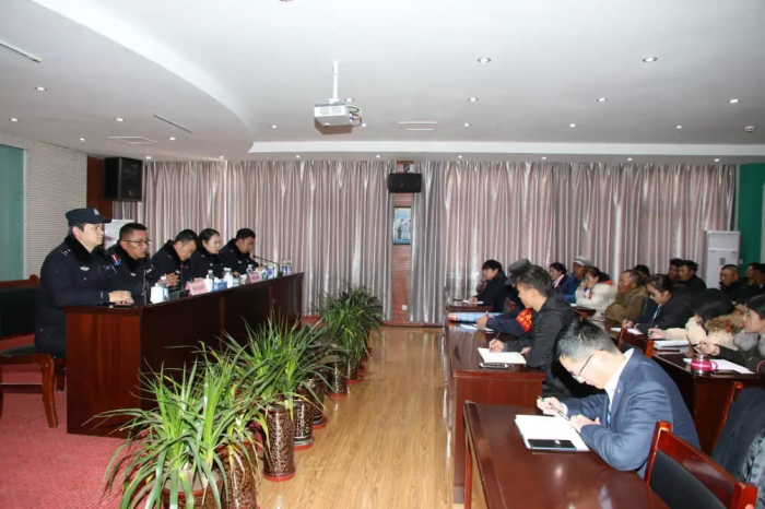 城關(guān)區(qū)公安局執(zhí)法監(jiān)督大隊(duì)大隊(duì)長(zhǎng)張?zhí)裣虼蠹移占傲司S護(hù)社會(huì)穩(wěn)定對(duì)于每個(gè)社會(huì)組織以及每個(gè)人的重要意義,希望大家充分理解公安民警的工作,并主動(dòng)配合公安機(jī)關(guān)的各項(xiàng)維穩(wěn)措施;張?zhí)裢瑫r(shí)傳達(dá)了“掃黑除惡、打非治亂”行動(dòng)在我區(qū)的推進(jìn)情況,希望大家從自我做起,人人為“掃黑除惡、打非治亂”行動(dòng)做貢獻(xiàn),以更好地保障自身人身和財(cái)產(chǎn)安全。