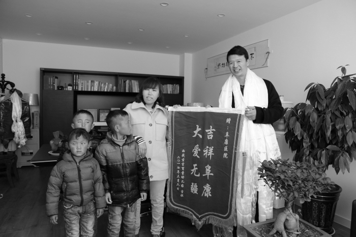 27歲的藏族女孩扎西曲宗,小小的個(gè)子,看到記者,眼睛笑得彎彎的。她是醫(yī)院的收費(fèi)員,兩年前來到拉薩阜康醫(yī)院。扎西曲宗只有初中文化,家在昌都市芒康縣,父母沒有文化,排行家里7個(gè)孩子中的老二。她要靠著這份工作供養(yǎng)家庭。去年藏歷新年前夕,扎西曲宗與公司10多個(gè)家境較為貧困的員工,獲得醫(yī)院的生活補(bǔ)助6000元。她激動(dòng)地對(duì)記者說:“醫(yī)院對(duì)我們都很好,我只有干好工作才能回報(bào)王董事長(zhǎng)。”