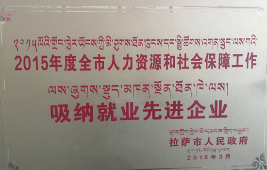 2015年度全市人力資源和社會保障工作吸納就業(yè)先進企業(yè)拉薩市人民政府