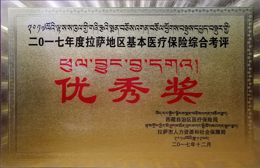 2017年度拉薩地區(qū)基本醫(yī)療保險綜合考評優(yōu)秀獎西藏自治區(qū)醫(yī)療保險局 拉薩市人力資源和社會保障局