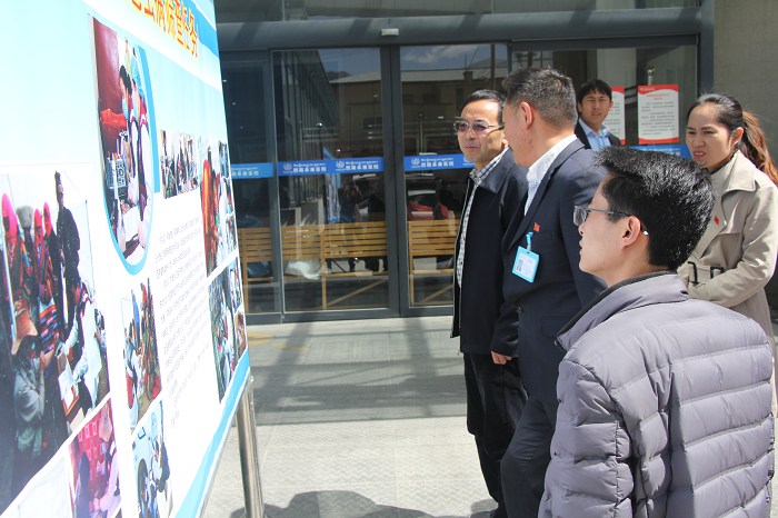 調(diào)研組領(lǐng)導(dǎo)觀看我院阿里包蟲病篩查工作匯報(bào)展覽板