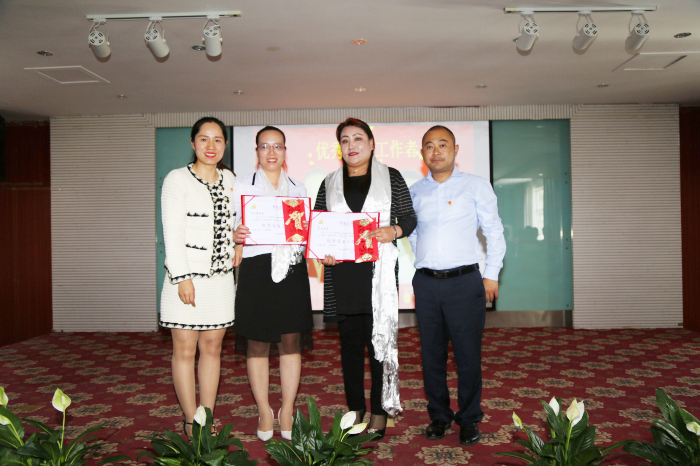 牛亞青、張政、雷羊州、劉秀等同志獲得“優(yōu)秀共產(chǎn)黨員”稱號,何文秀同志、索珍同志獲得“優(yōu)秀黨務工作者”稱號,義診組黨小組獲得“優(yōu)秀黨小組”榮譽,阜康“老兵之家”支部委員會、中共西藏阜康藥店聯(lián)合支部委員會獲得“先進基層黨組織”榮譽。陳彬、何文秀、劉秀、李映、李燕科、江潤霞、孫自豪等7位同志獲得阜康雪域天使志愿者服務隊 “志愿者之星”。區(qū)黨委組織部四處和公司黨委領導為獲獎人員頒獎。