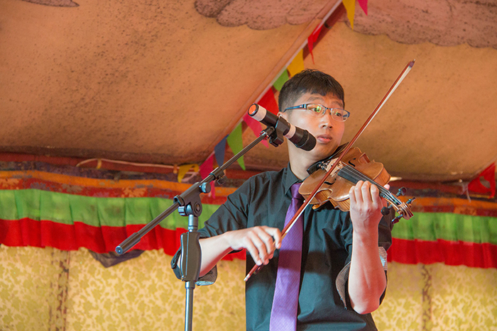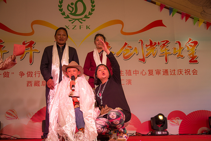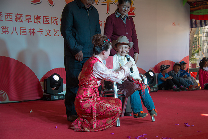 看藏裝典雅,賞舞姿婀娜。在三位主持人熱情洋溢的主持下,一曲優(yōu)雅典美的藏舞《芒康弦子》正式拉開了本次林卡文藝匯演的帷幕,也再度點(diǎn)燃了大家的林卡情懷!隨后,由醫(yī)院各科室員工帶來(lái)的諸如藏語(yǔ)歌曲演唱、小提琴演奏、架子鼓演奏、吉他演奏、古箏演奏、軍禮表演、現(xiàn)代舞蹈、獨(dú)舞、歌唱、小品、相聲、T臺(tái)秀、大合唱等一系列精彩紛呈的節(jié)目應(yīng)接不暇地呈現(xiàn)在大家眼前,讓現(xiàn)場(chǎng)觀眾為之歡呼雀躍,好不開懷。同時(shí),在本次的林卡文藝匯演中,還有一個(gè)十分特殊的節(jié)目——一個(gè)名為塔巴次仁的藏族小男孩及其家屬為我們?nèi)w阜康工作人員寫來(lái)一封感謝信,并在林卡演出現(xiàn)場(chǎng)為大家演唱了一首《感恩的心》。