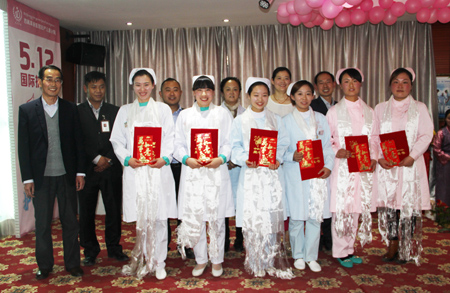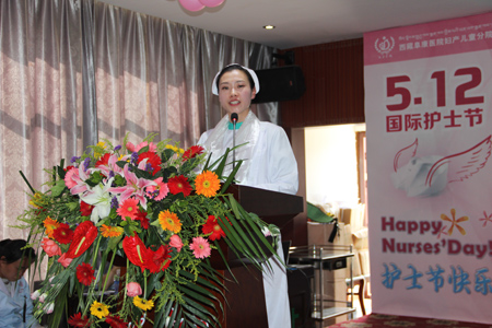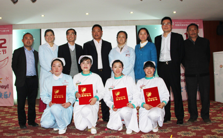 下午是“5.12國際護(hù)士節(jié)”慶?;顒樱ツ暌粯永星趦€節(jié)約只是搞了一個簡單地茶話會,但是滿桌的水果,粉紅色的節(jié)日慰問語,美麗的鮮花都是院領(lǐng)導(dǎo)對護(hù)士姐妹們最由衷的節(jié)日慰問。本次慶?;顒觿t瀟總經(jīng)理、陳彬總經(jīng)理、張德才院長、敖德秀副院長、劉連福副院長、李君副院長、張治副院長應(yīng)邀出席,他們紛紛致辭感謝全院護(hù)士這一年的辛苦工作,并對她們寄予厚望,希望白衣天使們,銘記“患者需求至上、團(tuán)隊精誠協(xié)作”的院訓(xùn),緊跟時代步伐,克服護(hù)理工作量大、人員緊張等諸多困難,齊心協(xié)力,努力工作,再創(chuàng)佳績。