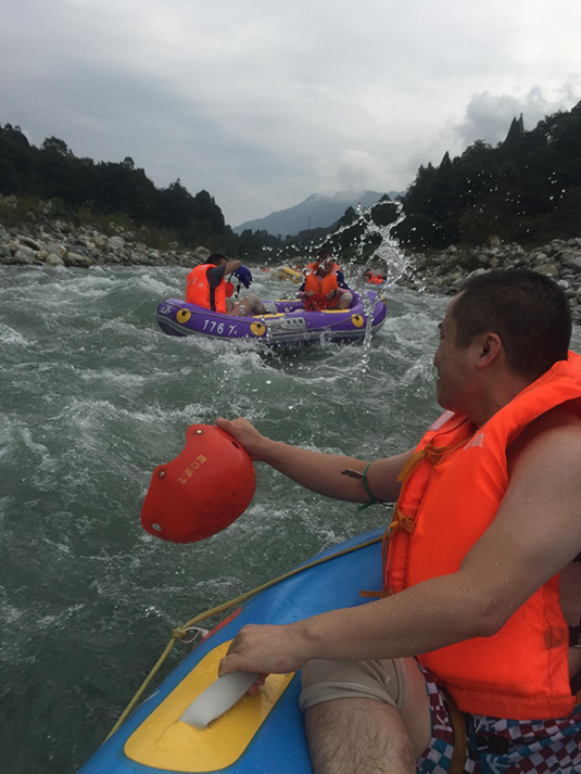 8月26日,終于迎來了最主要的團隊活動項目——漂流!同事們自行男女兩兩結合,在激蕩的漂流中,水戰(zhàn)、追趕、嬉戲,平時難以交流一句話的其他部門同事也開始互相合作奮起反擊,男同事和女同事之間也逐漸劃開原有的尷尬氣氛,盡情暢快的交談!頃刻間,沒有職位大小,沒有年齡層次,大家像是一家人,彼此信任,彼此釋放。