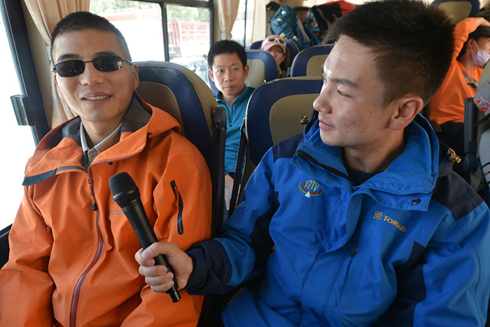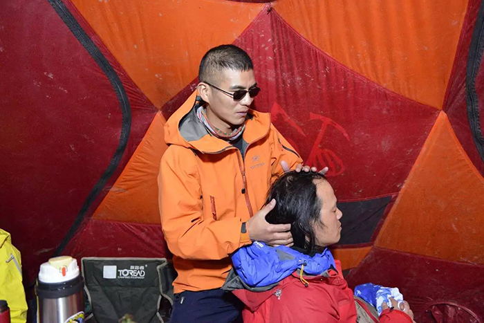 對于專業(yè)技術(shù)裝備的使用,張洪的接受能力也更強,很快就能完全獨立并且熟練操作這些裝備。張洪說:“我主要的問題就是看不到,不知道前邊的方向和哪條路線是安全的。但是這些問題都不是問題,攀登的時候會有一條安全繩,看不到但是卻能摸得到,沿著這條繩子往上都是安全的,我只要沿著它一步一步往上攀登,就能登上山頂。話聽著很簡單,但還是很難想象如此陡峭的山峰,如此厚重的積雪,一個盲人要克服多少困難才能登頂。”