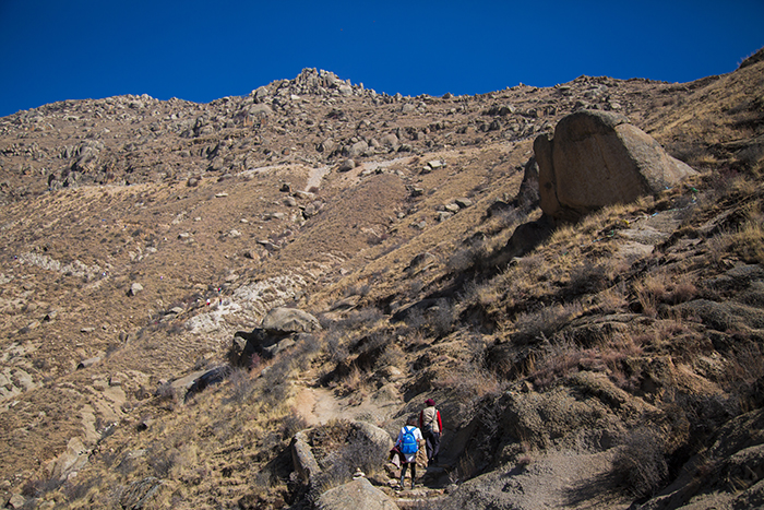 按照既定路線,我們沿著色拉寺的轉(zhuǎn)經(jīng)道到達了后山,開始向我們的第一個目標——色拉烏茲進發(fā)。