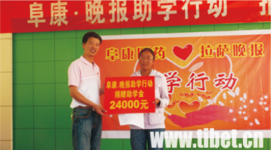 2008年8月29日下午,“阜康獎學金.晚報助學行動”活動組委會在西藏阜康醫(yī)院會議室舉行捐助儀式,西藏16名品學兼優(yōu)的貧困學生獲得了每人每年6000元的捐助,解決了他們大學四年的生活費,至此,為期兩個多月的“阜康·晚報助學行動”愛心捐助活動畫上了圓滿的句號。