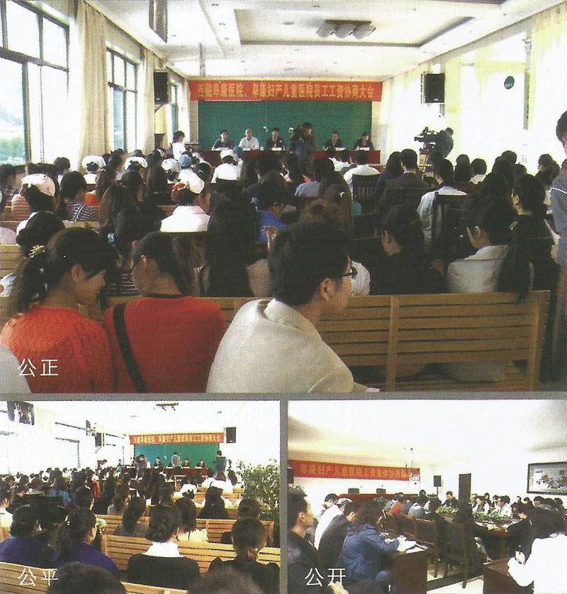 2011年9月10日下午,西藏阜康醫(yī)院、阜康婦產(chǎn)兒童醫(yī)院召開了全院員工工資協(xié)商大會。王斌董事長及醫(yī)院主要領(lǐng)導(dǎo)宣布了工資集體協(xié)商的一致意見。本次會議就阜康內(nèi)部員工工資分配制度、工資分配形式、工資支付辦法、工資標準等事項進行了平等協(xié)商,并達成了一致意見。