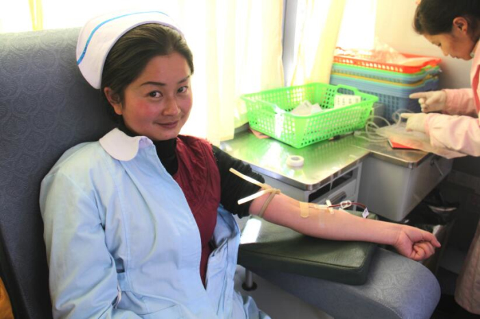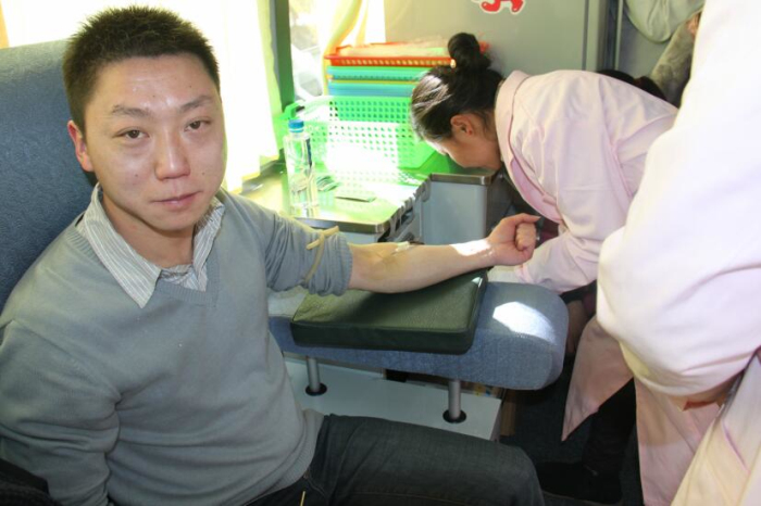 近日拉薩市血庫全線告急,血庫面臨血荒的危機。在得知這一緊急情況后王斌懂事長、劉瀟瀟總經(jīng)理立即組織阜康員工積極獻(xiàn)血,在阜康各位領(lǐng)導(dǎo)的帶領(lǐng)下,2013年1月30日他們來到阜康婦產(chǎn)兒童醫(yī)院血液中心采血點義務(wù)獻(xiàn)血。采血現(xiàn)場筆者看到在阜康婦產(chǎn)兒童醫(yī)院呂果梅副院長和拉薩大藥房何文秀店長的組織下大家排著整齊長隊等待獻(xiàn)血。筆者有幸采訪到了阜康醫(yī)院心腦血管分院內(nèi)科主任于永軍,據(jù)于主任介紹他已是多次參與獻(xiàn)血,阜康的員工都是很無私的,很多時候在面臨病人急需輸血而血站又缺血的情況下阜康員工就會自發(fā)組織在一起去血站為病人獻(xiàn)血,這種情況總是經(jīng)常出現(xiàn)。于主任告訴筆者自己獻(xiàn)血也是想起到一個帶頭的作用,很多人不愿獻(xiàn)血就是怕對身體有傷害,醫(yī)生護(hù)士積極獻(xiàn)血能告訴大家適當(dāng)獻(xiàn)血不但對身體沒有害處還有利于身體健康。
