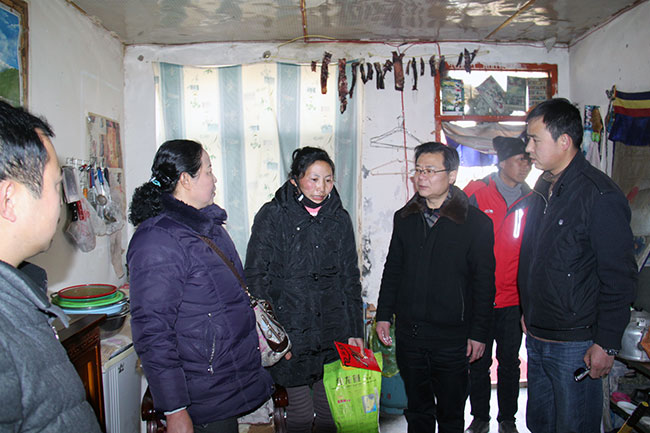 阜康婦產(chǎn)兒童醫(yī)院保潔組組長昂旺桑姆租住在區(qū)防疫站低矮的出租房里,房子面積小、背陰,即使在陽光燦爛的日子里也須一直生火取暖。她的丈夫患有嚴(yán)重的高原心臟病,已經(jīng)喪失了勞動(dòng)能力,每日在家養(yǎng)病,所需醫(yī)療費(fèi)用成為家中一個(gè)極大的支出項(xiàng)目,與此同時(shí),她一個(gè)人的工資還要負(fù)擔(dān)兩個(gè)孩子的學(xué)費(fèi)、生活費(fèi),為此一家人只能租住在租金便宜、條件惡劣的出租房里。活動(dòng)當(dāng)天,當(dāng)院領(lǐng)導(dǎo)來到她家時(shí),因?yàn)榉孔用娣e太小,一進(jìn)入室內(nèi)就已經(jīng)無法轉(zhuǎn)身,顯得特別的擁擠,說起家里的困難時(shí),昂旺桑姆語帶哽咽,淚盈于睫。