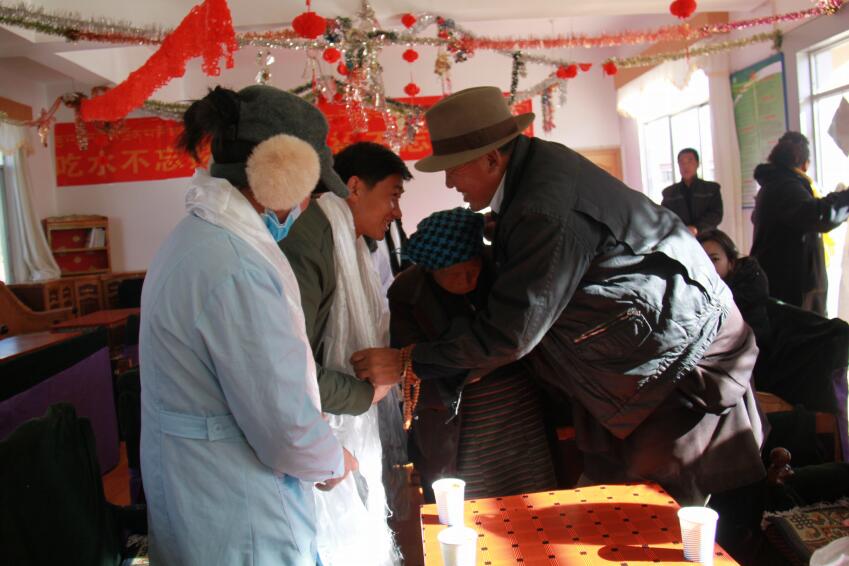 下午,我們又來(lái)到墨竹工卡縣扎西崗鄉(xiāng)敬老院,對(duì)老人進(jìn)行義診。當(dāng)天,我們一共對(duì)300位老人進(jìn)行了免費(fèi)體檢,發(fā)放了價(jià)值10000余元的藥品。