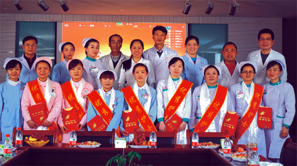 接下來對在這一年里表現(xiàn)優(yōu)秀的7名護士進行了表彰,她們分別是李尚春、次仁、李敏、徐秀娟、羅國波、曹紅、龍芬。院領(lǐng)導(dǎo)為他們頒發(fā)了榮譽證書、獎金,給他們敬獻哈達并合影留念。獲獎護士代表李尚春、羅國波、曹紅分別進行了發(fā)言。最后由李君副院長對大會作總結(jié),在肯定我們工作的同時也提出了新的要求。希望在未來的時間里我們?nèi)横t(yī)護人員以更高層次的服務(wù)水平嬴得患者的滿意。為醫(yī)院改革發(fā)展作出更大的貢獻。