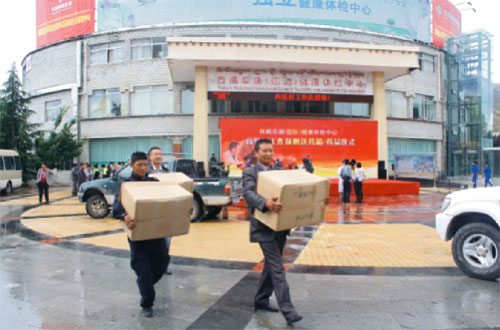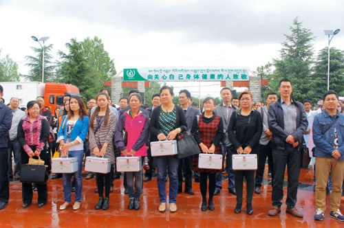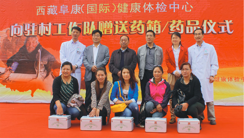 西藏阜康(國際)健康體檢中心王斌董事長首先向?yàn)榇龠M(jìn)西藏和諧發(fā)展長期駐村(居)的工作人員表示崇高的敬意!據(jù)了解,本次為拉薩市267個駐村(居)工作隊(duì)贈送的小藥箱中配備了急救類、解熱鎮(zhèn)痛類、治感冒類、止咳化痰類、抗菌藥物類等14類共31種常用藥品及電子血壓計(jì),總價(jià)值約20萬元。王斌董事長在贈送儀式上講到“本次開展西藏阜康(國際)健康體檢中心向駐村(居)工作隊(duì)贈送藥箱活動,旨在為民解困難,為民辦實(shí)事,為我們駐村(居)工作人員健康做好堅(jiān)實(shí)的后盾,促進(jìn)西藏穩(wěn)定和諧發(fā)展。”王斌董事長希望能給駐村(居)工作人員帶來健康,同時也希望能在黨的群眾路線教育實(shí)踐活動中獻(xiàn)出民營企業(yè)的一份綿薄之力。