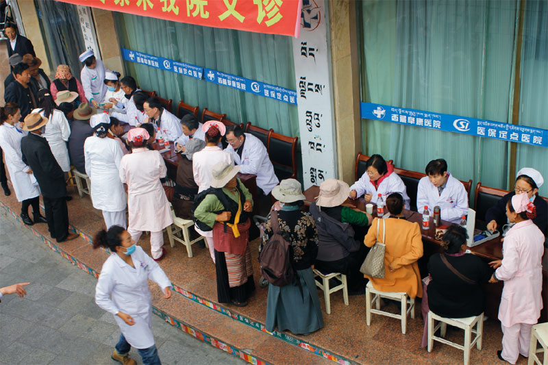 因?yàn)檎Z言問題,阜康醫(yī)院的醫(yī)護(hù)人員主動承擔(dān)起“導(dǎo)醫(yī)”的工作,認(rèn)真聽取并翻譯專家和患者的每一句話。本次義診活動進(jìn)行到下午6時許,8位專家為近200位居民提出保養(yǎng)身體的意見和建議。市民扎西在參加過義診后說:“我平時總有頭疼病,今天專家診斷過后,告訴我以后要少喝酒,注意作息,就能好。謝謝專家們頂著大太陽為我們看病。”