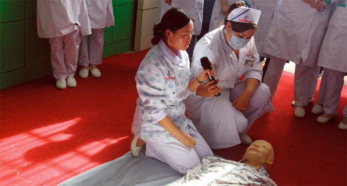 為了進(jìn)一步規(guī)范我院職工心肺復(fù)蘇技能操作,同時(shí)通過模擬院內(nèi)突發(fā)急救事件,強(qiáng)化流程培訓(xùn),提高全院人員的急救意識(shí),達(dá)到全員熟練掌握的目的, 2015年6月26日下午,我院組織舉辦心肺復(fù)蘇培訓(xùn)班。全院60多名護(hù)理人員參加了培訓(xùn)。急診科護(hù)士黃燕妮向參加培訓(xùn)的護(hù)理人員詳細(xì)講解了心肺復(fù)蘇緊急救護(hù)的基本原則、方法與步驟,通過現(xiàn)場模擬演練,讓參訓(xùn)人員對(duì)心肺復(fù)蘇的全過程有了更加深刻的理解。