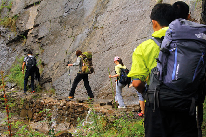 早餐是一大碗雞蛋面,我夾了好多給新疆的大哥,其實過螞蝗區(qū)后,只要一吃東西真的不由自主就會有反胃的感覺,不逼著自己真是什么也吃不下。但走在路上,最重要的就是食物和水。不得不吃!