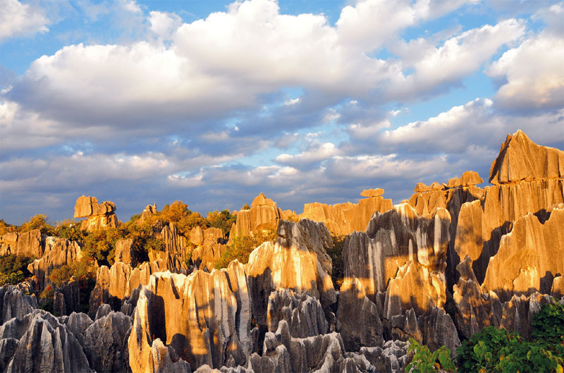 石林是最后一站(赫然發(fā)現(xiàn)小時(shí)候大爸煙盒上的畫兒就是石林)。大自然鬼斧神工,造化神秀,參天的巨石中開辟出僅一人的路來,一片石頭形成了一方小小的世界,這里是石頭的王國。石林的石頭據(jù)說和周圍地質(zhì)都不同,也許是天外來石?悄悄地?fù)炝艘恍K帶回家。在石林前穿著少數(shù)民族服裝來了個(gè)全家福。