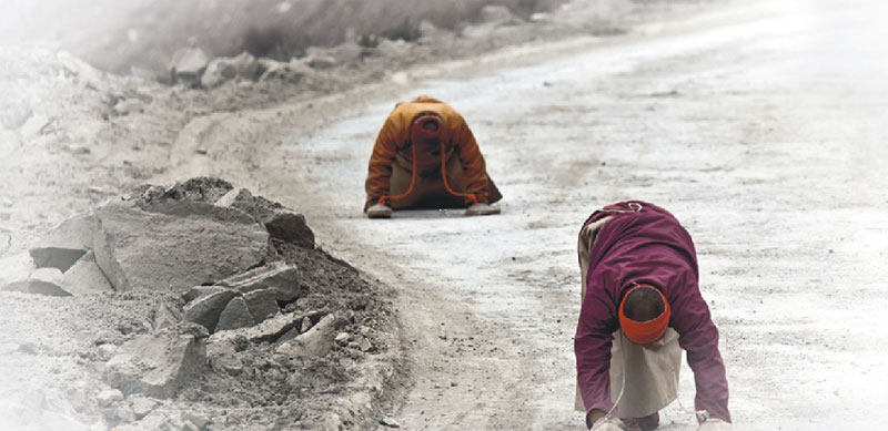 這是快樂美好的七個月,這七個月我們度過了拉薩舒適的夏季、絢麗的秋天、干燥而陽光燦爛的冬季,領(lǐng)略了雪域高原的大美風光和藏區(qū)神圣的宗教人文景觀。五彩的經(jīng)幡在湛藍的天空下飄揚、清澈見底的高山湖泊在明媚的陽光下泛著七彩的波光,高聳入云的雪山讓人仰望;喇嘛紅衣、匍匐在朝圣路上的信徒,在西藏這片熱土上屹立著堅定的信仰。我不懂他們,我只是靜靜看著他們,在目光相遇的時候,給一個微笑,我便得到了發(fā)自心底的快樂、滿足和信任。在他們面前,一切都變得簡單、虔誠、付出也是一種快樂。認識了車隊的巴次,知道了巴次的一些故事,留心著他的言行,我知道了一個普普通通的藏族青年,有著佛一樣的慈悲心,他就那樣付出著、快樂著……我被感動著,感染著。