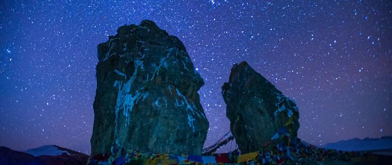 待得夕陽落盡,繁星滿天,九垓汗漫,玉宇無塵,皓月灑下一天一地的清輝,照得湖面靜沉沉如一塊青碧琉璃。天上桂魄流光,地下瑩玉幻彩,上下爭輝之際,人處其中,如置身于晶宮鮫室,亦幻亦真,似臨仙境。納木錯(cuò)是藏密圣地,緣湖一帶似也受到佛法洗禮,便如禪那洞天,菩提妙境。佛學(xué)無法無相,漫無涯涘,水之為物,也是隨圓就方,緣物賦形,納木錯(cuò)正契合佛法妙諦。