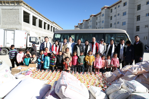 2015年12月19日,值此圣誕、新年即將到來(lái)之際,香格里拉大酒店及西藏阜康醫(yī)院部分員工乘坐滿載物資的貨車以及一輛客車,探訪了如今居住在日喀則市北郊公租房的聶拉木縣樟木鎮(zhèn)立新居委會(huì)的村民們,為經(jīng)歷災(zāi)難、過(guò)上了新生活的聶拉木縣居民們送上了節(jié)日問候。