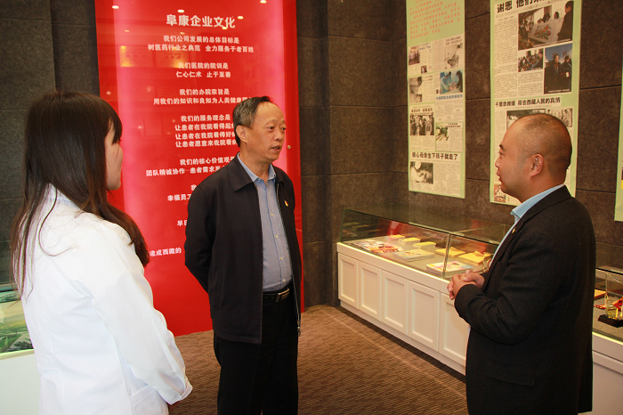 在阜康醫(yī)院五樓院史館,劉連福向劉家杰一行介紹了阜康醫(yī)療不平凡的發(fā)展歷程以及阜康人在黨的建設(shè)、抗震救災、公益事業(yè)、企業(yè)文化等方面的成就,劉家杰一行對阜康醫(yī)療各方面的工作表示充分認可并對“阜康”中所含的物阜民康——“物產(chǎn)豐富,民族安康”之意表現(xiàn)出極大的興趣,希望通過阜康人在醫(yī)藥領(lǐng)域的不懈努力,勇于攀登醫(yī)學高峰,為西藏的醫(yī)療發(fā)展貢獻力量。