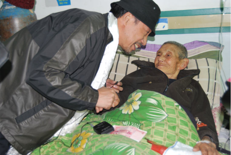 此次的西藏之行,田啟蘭專門代表綿竹人民準(zhǔn)備了一副《富貴吉祥》手工刺繡圖,表達(dá)災(zāi)區(qū)群眾的感激之情。這幅刺繡是田啟蘭和幾名繡女不分晝夜趕制出的。對于田啟蘭來說,這不僅是一次感恩之旅,更是去探望自己“家人”的溫馨之旅。  而孫海英呂麗萍夫婦了解到,阜康醫(yī)院醫(yī)療救援隊(duì)醫(yī)療一直在免費(fèi)收治有困難的患者。在探訪時(shí),有一位70多歲的老人就正在接受治療,所有的費(fèi)用都是該公司董事長一個(gè)人承擔(dān)。得知這個(gè)情況后,  孫海英夫婦當(dāng)即掏出自己隨身攜帶的全部3000多元現(xiàn)金捐獻(xiàn)出來。在了解索珍有身孕在身,孫海英夫婦和田啟蘭又一起買了禮物去看望這位白衣天使。