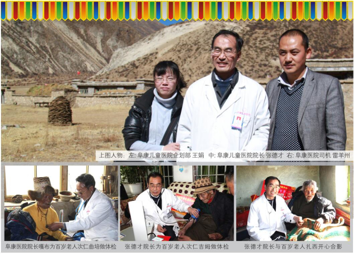 西藏高寒缺氧,自然環(huán)境惡劣。60多年前,這里的人均壽命才35.5歲。然而到了2012年,光拉薩的七縣一區(qū)就有16位百歲老人,正是這些百歲老人,見證了西藏翻天覆地的巨變,他們是全社會的寶貴財富,更是西藏從貧窮落后走向繁榮富強的親歷者、見證者。在全國人民喜迎黨的十八大勝利召開之際,西藏阜康(國際)健康體檢中心與拉薩市民政局老齡辦組織發(fā)起了“關愛百歲老人行動”。此次行動歷時16天,里程2000多公里,尋訪了拉薩七縣一區(qū)十一位百歲老人,不僅為每位老人送上了精心準備的三千元現(xiàn)金、五千元健康體檢卡、一個便攜式氧氣瓶、一個便攜式血壓儀,還為他們送上了免費義診和相關藥品。王斌董事長參加了此項活動的啟動儀式,嘎布院長、張德才院長親自帶隊為每一位百歲老人做了常規(guī)的身體檢查,并送上了藥品和祝福。