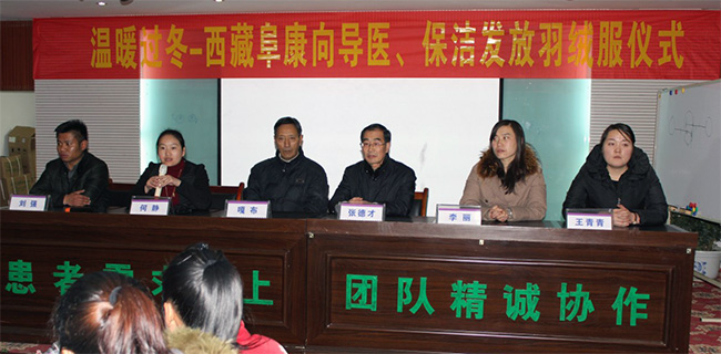 入冬以來,拉薩的氣溫降至零度以下。優(yōu)質(zhì)服務(wù)辦為三家醫(yī)院的保潔、導(dǎo)醫(yī)購買了棉衣并2014年12月16日在婦產(chǎn)兒童分院四樓舉行發(fā)放儀式。張德才院長、嘎布院長等院領(lǐng)導(dǎo)出席此次發(fā)放儀式。